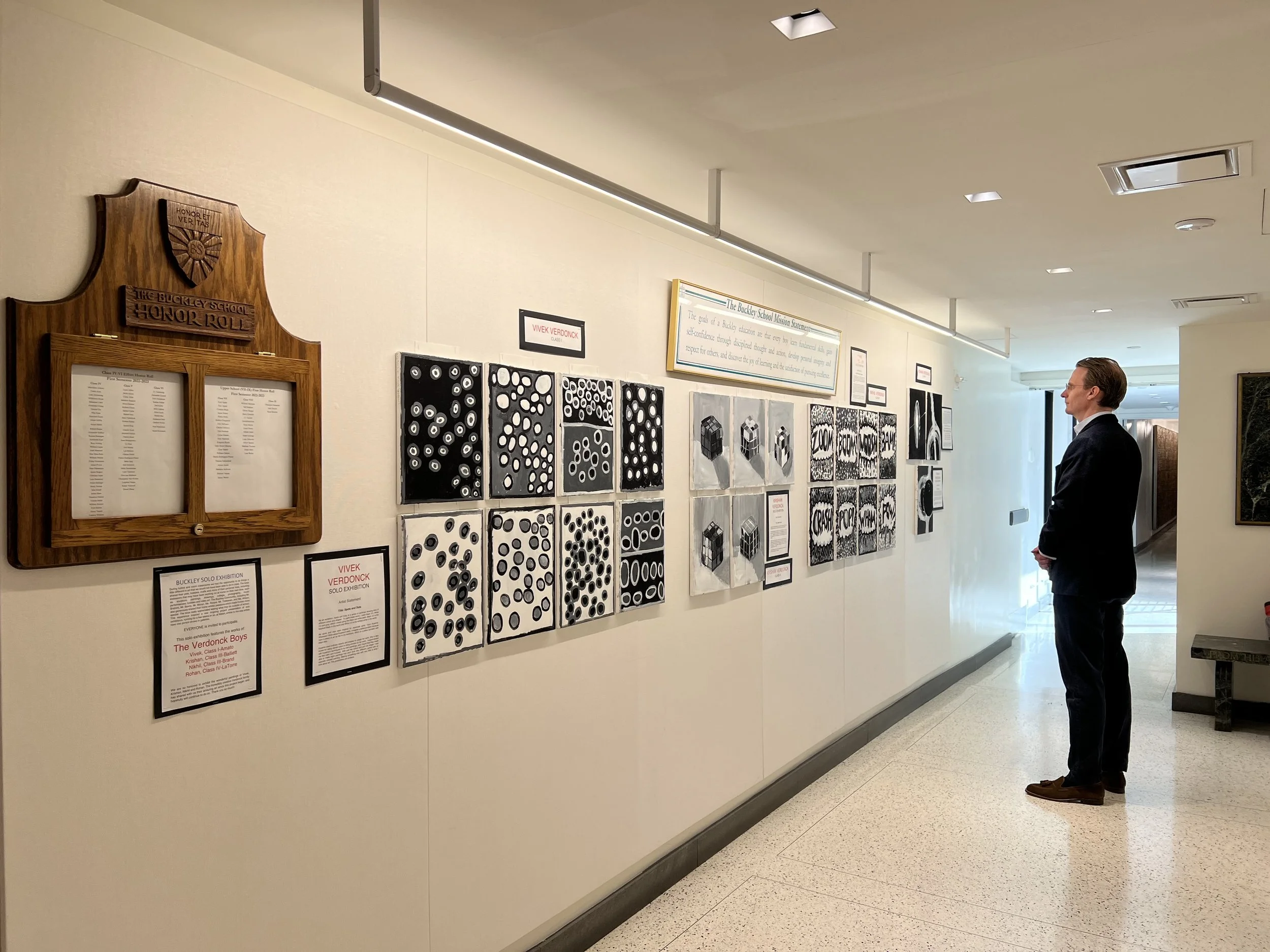 Solo painting exhibition, main hallway installation outside Head of School O’Melia’s office